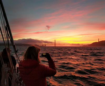 See the SF Bay's iconic sights -- Alcatraz, Angel Island, the Marin Headlands, the Golden Gate Bridge, and the San Francisco skyline -- all while enjoying the sunset!